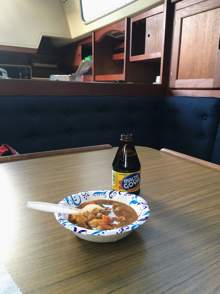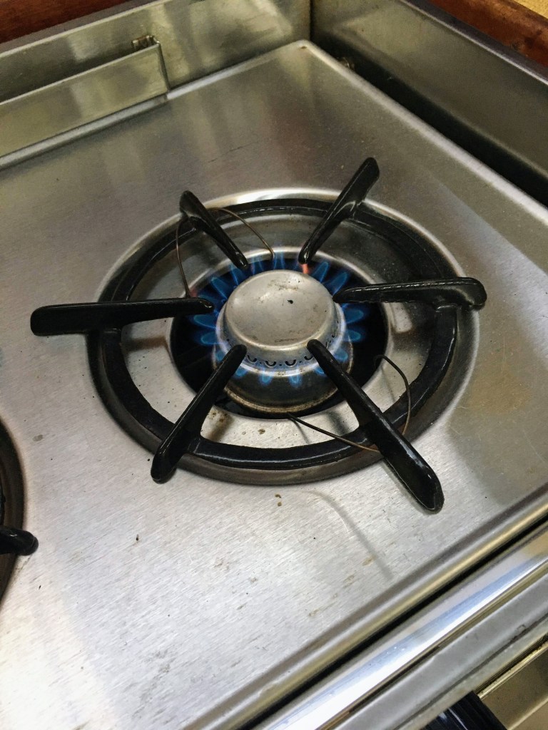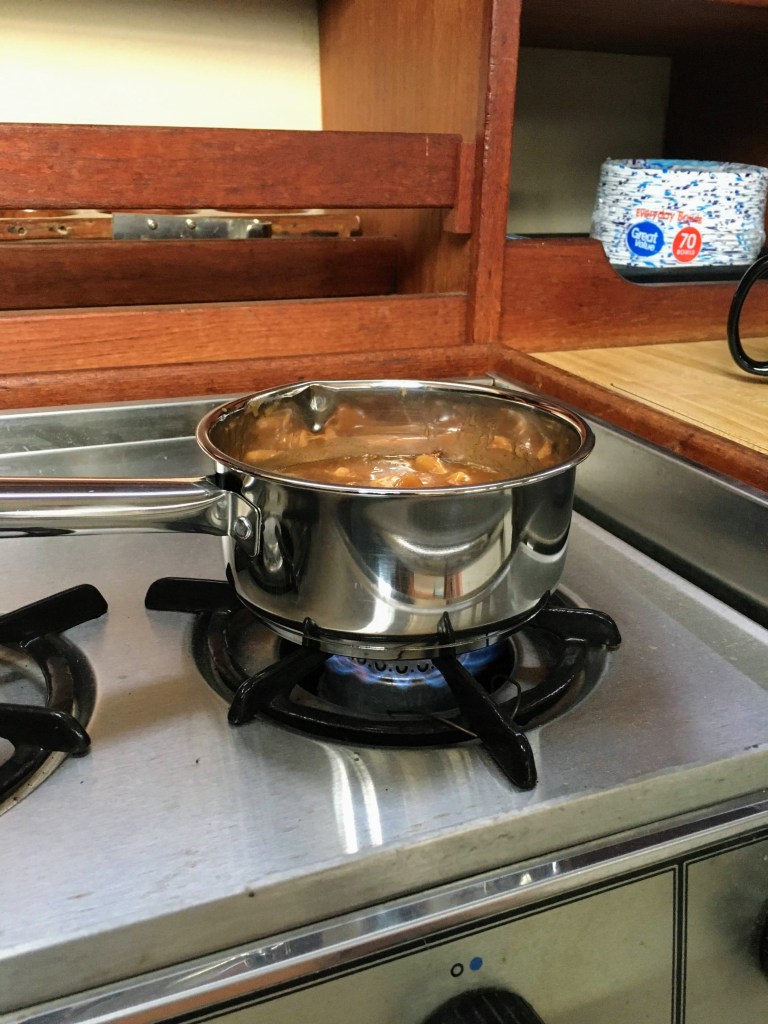 Made my first dinner on the boat, still on land getting ready to launch but tonight I learned how to use the compressed natural gas stove and wow does it heat up Dinty Moore quickly!